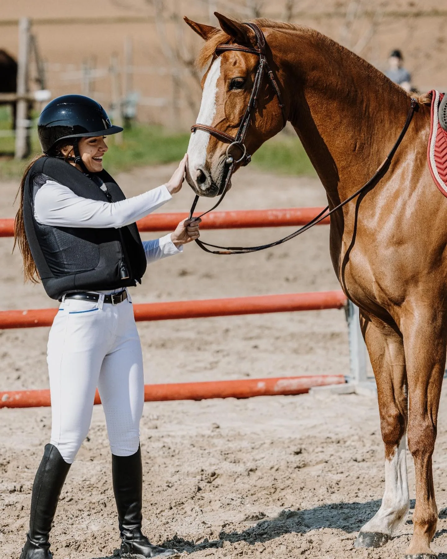 Zračna blazina ščiti jahačeve vitalne predele. Zaščitni prdeli: maternični vrat, hrbet, ledveni del, križnica, medenica, prsni koš, ramena.