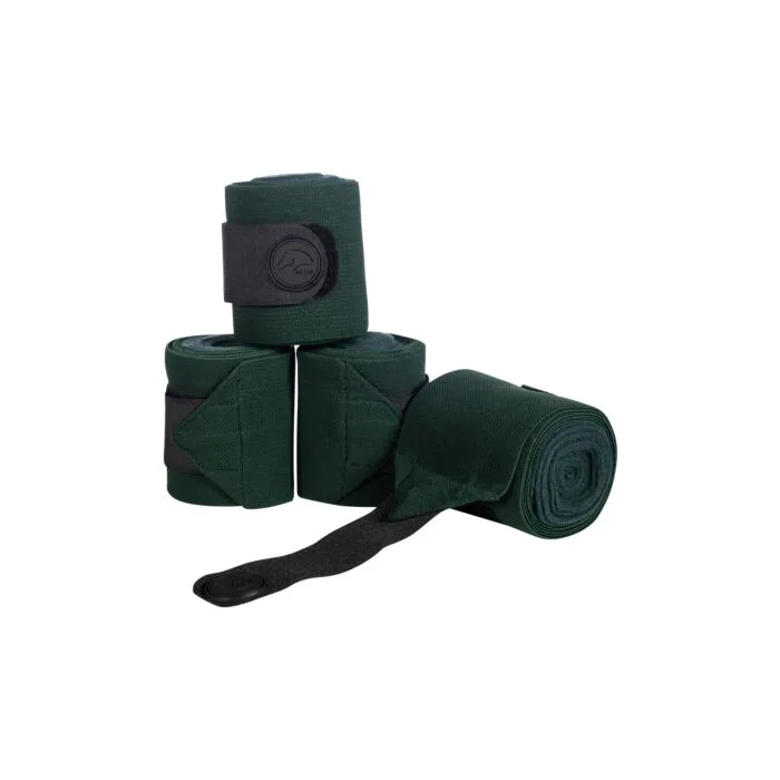 Komplet Bandage‑Combo HKM vsebuje štiri vsestranske bandaže, ki združujejo podporno elastičnost in udobje polarnega flisa. Vsak kos je izdelan iz dveh plasti – elastičen zunanji sloj (50 % poliester, 50 % elastan), ki zagotavlja stabilno oporo, in nežen notranji sloj iz flisa (100 % poliester), ki ščiti kožo konja pred draženjem. Bandaže so široke približno 10 cm in se enostavno zapnejo s širokim velcro trakcem (~5 cm). Komplet je priročno pakiran v torbico z zadrgo za urejeno shranjevanje.