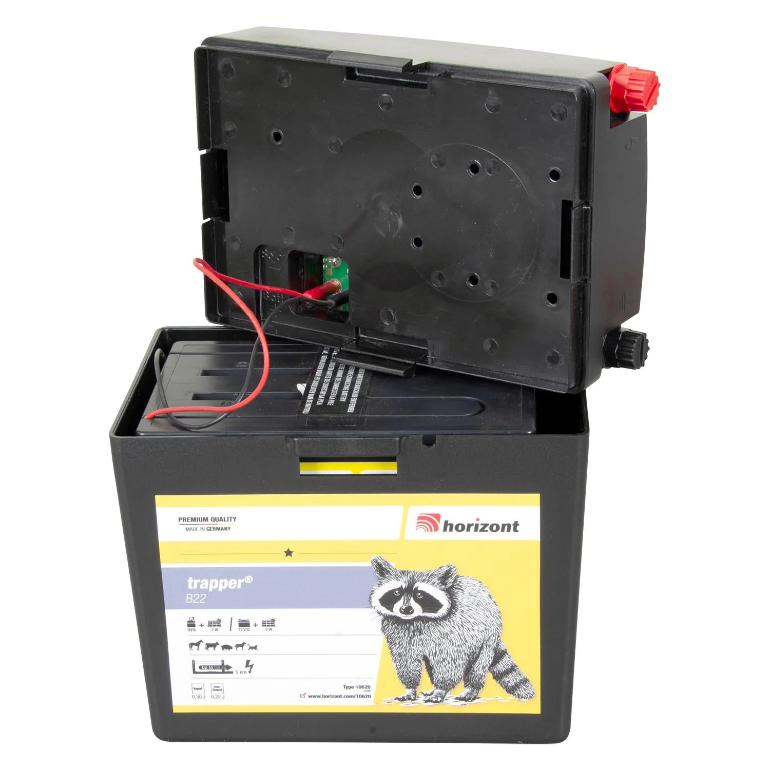 Električni pastir Horizont Trapper B22 je baterijski pastir za priklop na 9V/120Ah ali 12V/12Ah baterijo.