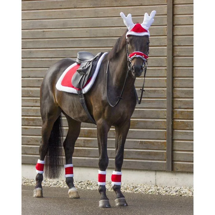 100% poliesterski filc, podstavljen i ukrašen obrubom od sintetičke ovčje kože. Zatvaraju se velcro čičcima na unutarnjoj strani. U kompletu su 4 božićna povoja Santa Clause.
