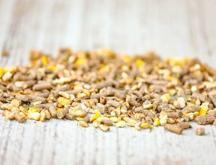 Pšenični otrobi, lucerna, ječmenovi kosmiči, koruzni kosmiči, korenčkova vlakna, lanena semena, sojine lupine, sladkorna melasa, kalcijev karbonat, pšenični kalčki, pivski kvas, sol, monokalcijev fosfat, magnezijev oksid, zelišča (med drugim: žajbelj, timijan, poprova meta, česen), vitamini (A, D3, E, B-skupina), minerali (Cu, Zn, Mn, Se), prebiotiki in probiotiki.