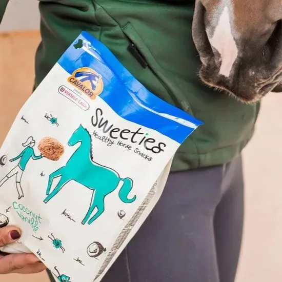 Cavalor Sweeties su zdravi konjski slatkiši s okusom kokosa i vanilije, obogaćeni vitaminom A, D i E.