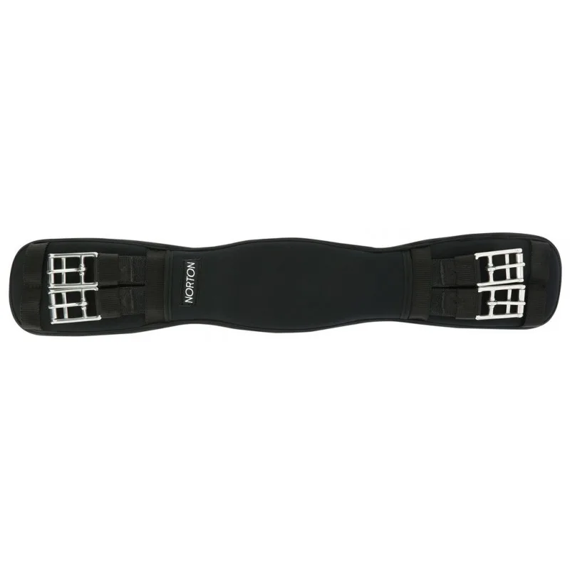Dresurni podsedelni pas Norton Memory iz spominske pene z najlonom na zunaji strani in vpojno poliestersko mrežico na notranji strani. Robovi so mehki in preprečujejo drgnjenje. Zaponke iz nerjavečega jekla. Pripete so na elastične pasove dvojne debeline, ki so na obeh koncih podsedelnega pasu.