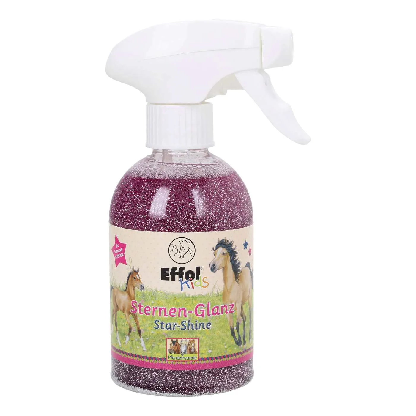 Effol KIDS Star Shine sprej sa šljokicama je posebno postojan svjetlucavi sprej za konje i ponije. Može se nanijeti na dlaku, grivu ili rep.