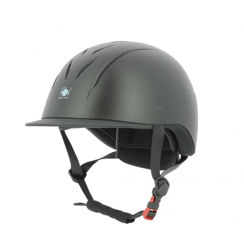 Početnička prva mat crna jahaća kaciga RW Hepi s okomitim otvorom za zrak sprijeda. ABS kaciga, vrlo otporna na udarce čak i pri ekstremnim temperaturama. Unutarnja ljuska od EPS-a (ekspandiranog polistirena) visoke gustoće vrlo je lagana i ima odlična svojstva ublažavanja udaraca. Stotine intarziranih polukrugova na vanjskoj površini ljuske pomažu u ublažavanju udaraca, ali u kombinaciji s prednjim, stražnjim i središnjim otvorima za zrak povećava i količinu zraka koji teče kroz kacigu. Uklonjiva i periva tekstilna unutarnja podstava upija vlagu. Traka za bradu od mikrovlakana sa zaštitom za bradu, kopčom za brzo otpuštanje i 4-točkovnim pričvršćivanjem straga, koja prati izrez, osigurava dobro postavljanje i stabilnost kacige na glavi.