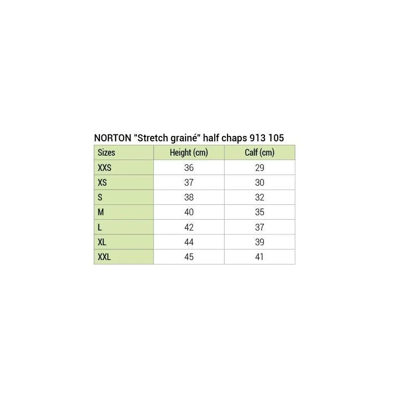 Jahalne gamaše Norton Stretch Graine so izdelane iz poliuretana z videzom zrnatega usnja. Podloga je iz raztegljiega elastanskega blaga “Micro Touch”, kar gamašam daje odlično prileganje jahačevi nogi, brez motečega omejevanja.