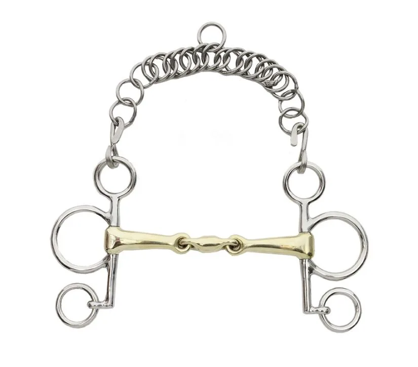 Kavalkade dvakrat lomljen Babypelham je narejen iz kombinacije nerjavečega jekla, medenine in bakra, ki so primerni za konje. Udobno se prilega konju v usta. Vsi spojeni deli in komponente so odlično obdelani in oblikovani ročno, tako da ne povzročajo drgnjenja in pritiska. Kavalkade paelham ima majhne 4cm velike obročke in je opremljen z verižico.