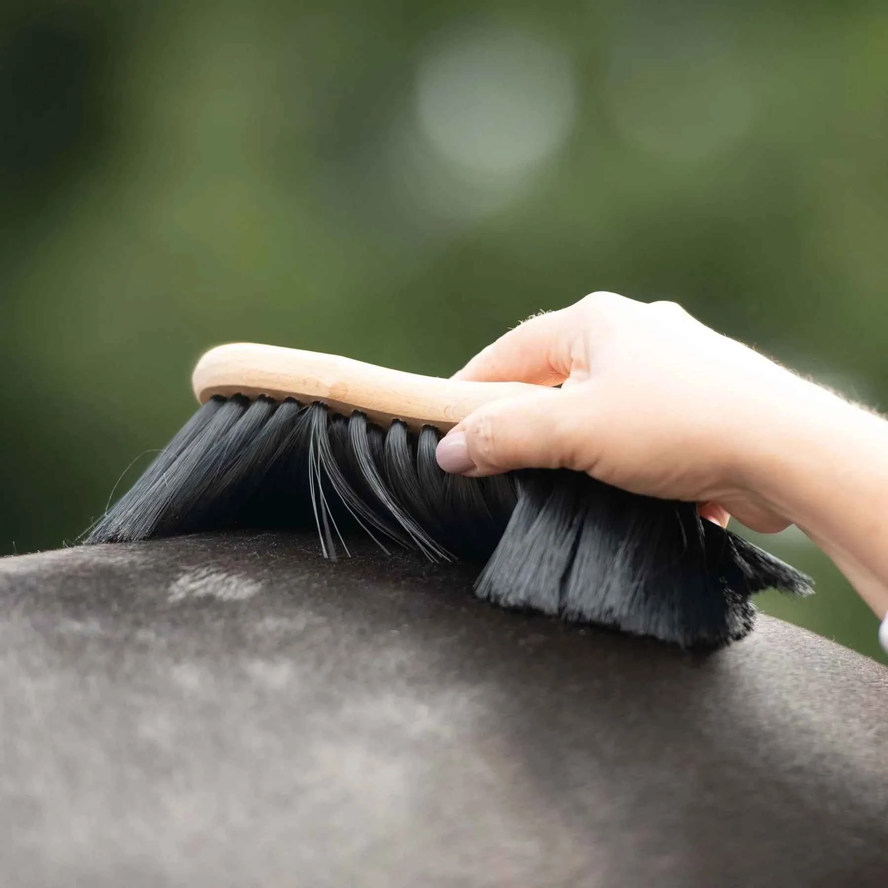 Krtača Borstiq Shaped Finishing – krtača za nego konj je izdelana iz mehkih ščetin konjske žime visoke gostote in bukovega lesa. Shaped Finishing je razkošna mehka krtača in je idealna za pobrite konje ter za ščetkanje glave in ušes ter mehkih in občutljivih predelov. Učinkovita za doseganje sijoče dlake.