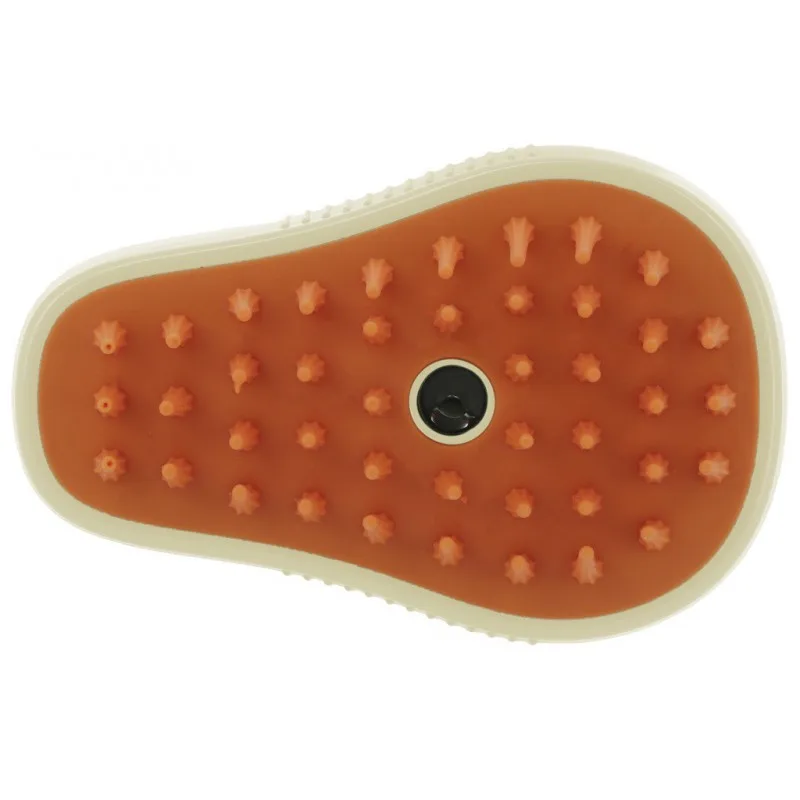 Krtača ima na eni strani gumijaste trde ščetine za odstranjevanje umazanije, odmrlih dlak in ostankov.