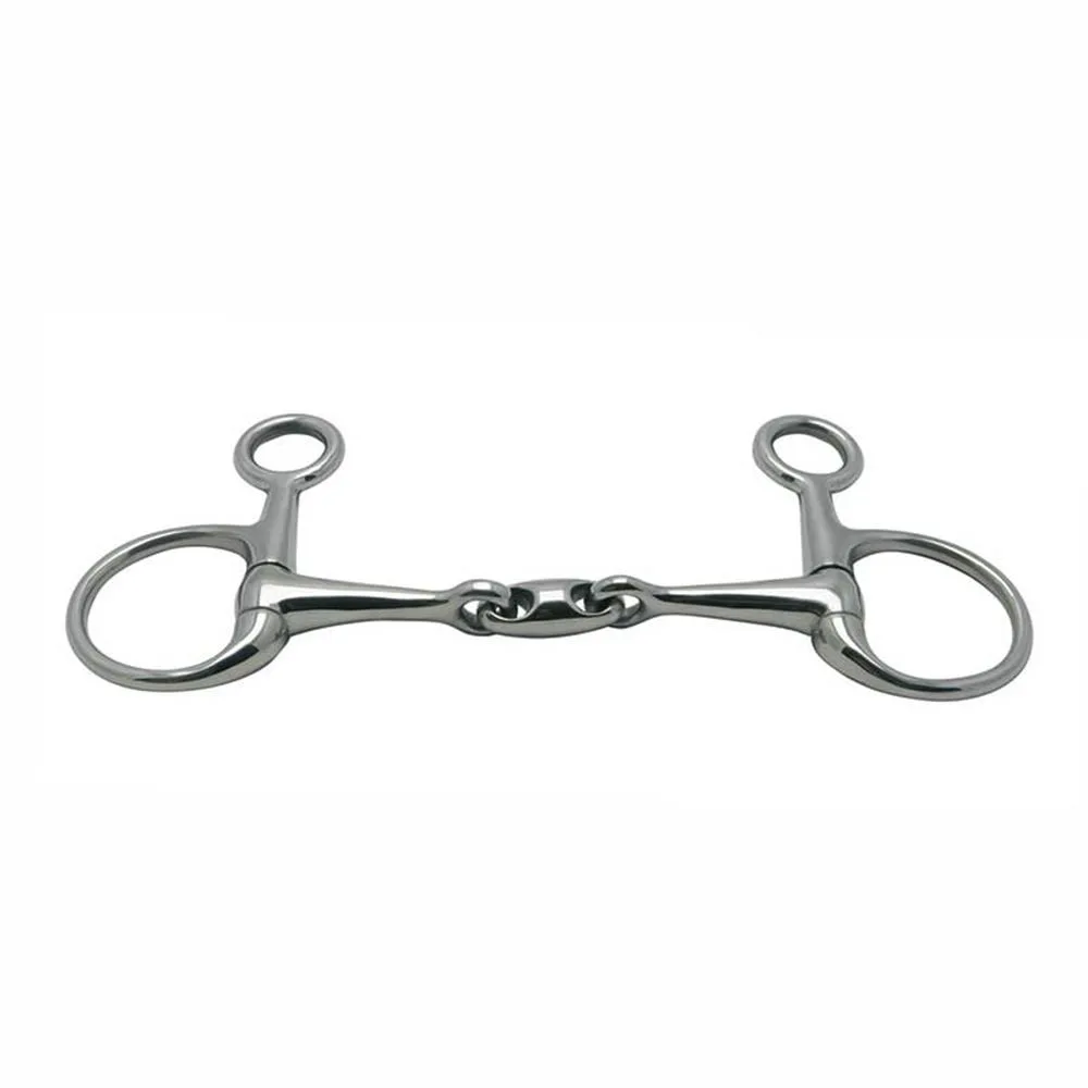 Udobnost za konja: Dvostruko lomljen usni dio s ovalnom poveznicom smanjuje pritisak na osjetljive točke u konjskim ustima, što povećava udobnost i smanjuje mogućnost nelagode.