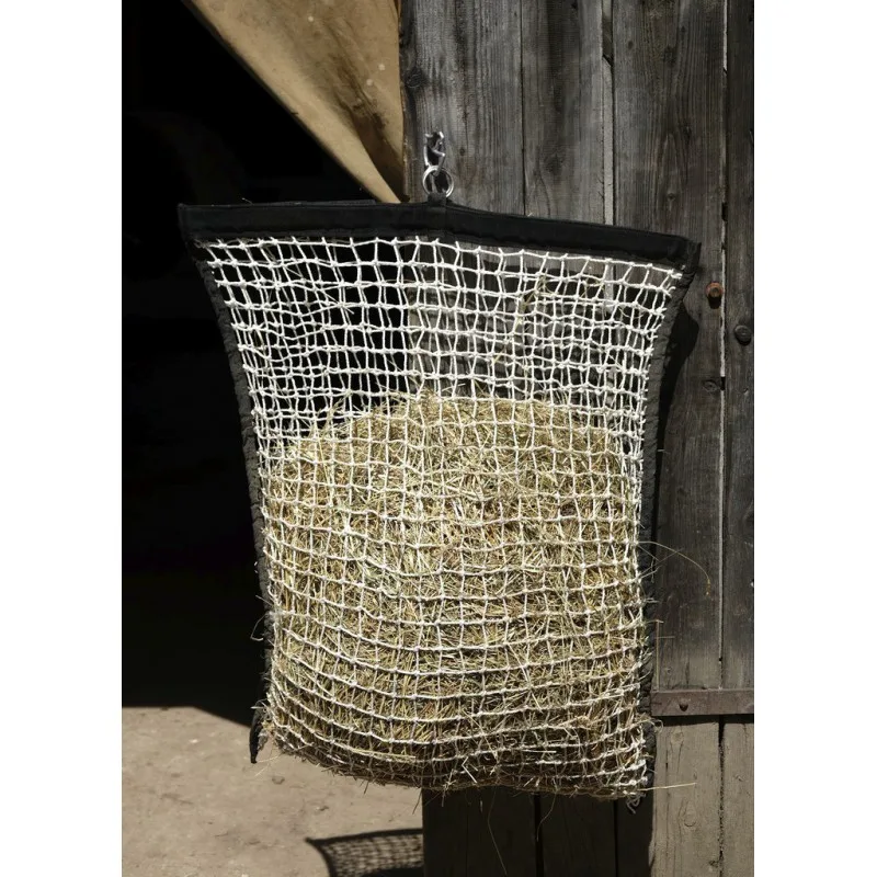 Mreža za sijeno Hippotonic je svrlo praktična i jednostavna za punjenje zahvaljujući velikoj ojačanoj velcro traci na vrhu. Dimenzija rupa mreže, 3 x 3 cm, omogućuje sporo hranjenje sijenom. Neto dimenzije 93 x 78 cm. Ima 2 prstena za vješanje.