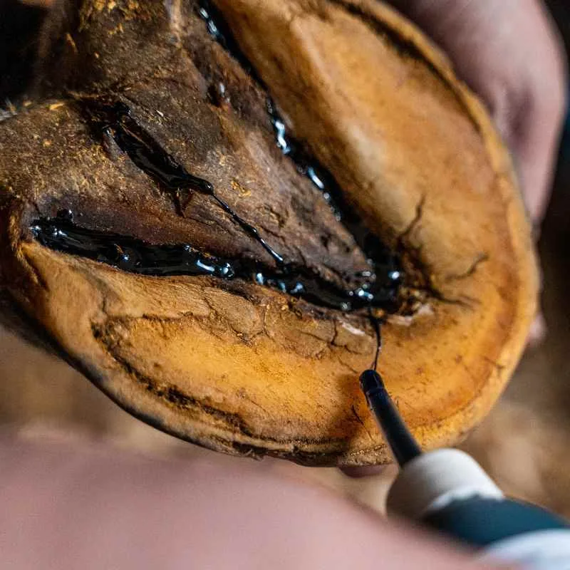 - Dolgotrajna zaščita: Oblikuje zaščitni sloj na kopitu, ki ohranja njegovo celovitost in prožnost tudi v najtežjih pogojih.