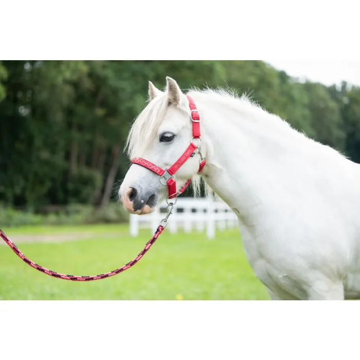 Anatomsko oblikovana oglavka, z ljubko vezenino podkvic, katera bo olajšala vodenje vašega ponija.