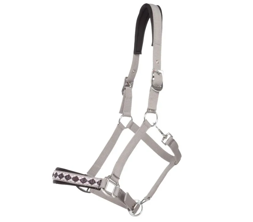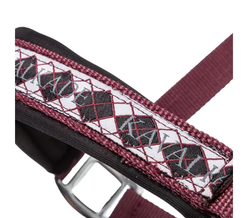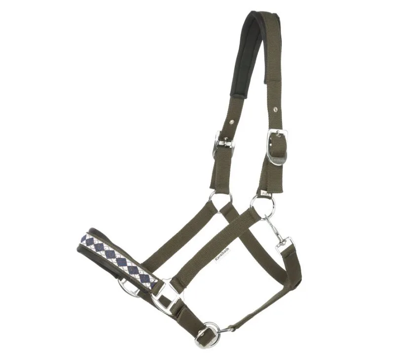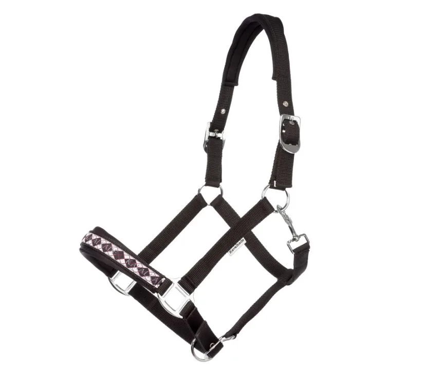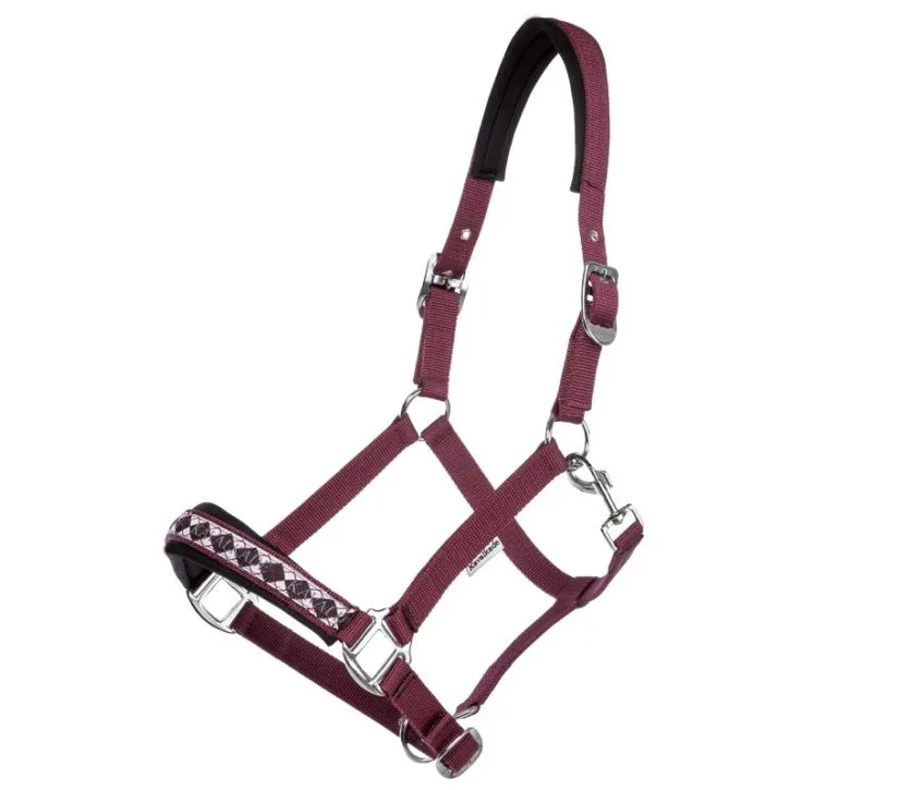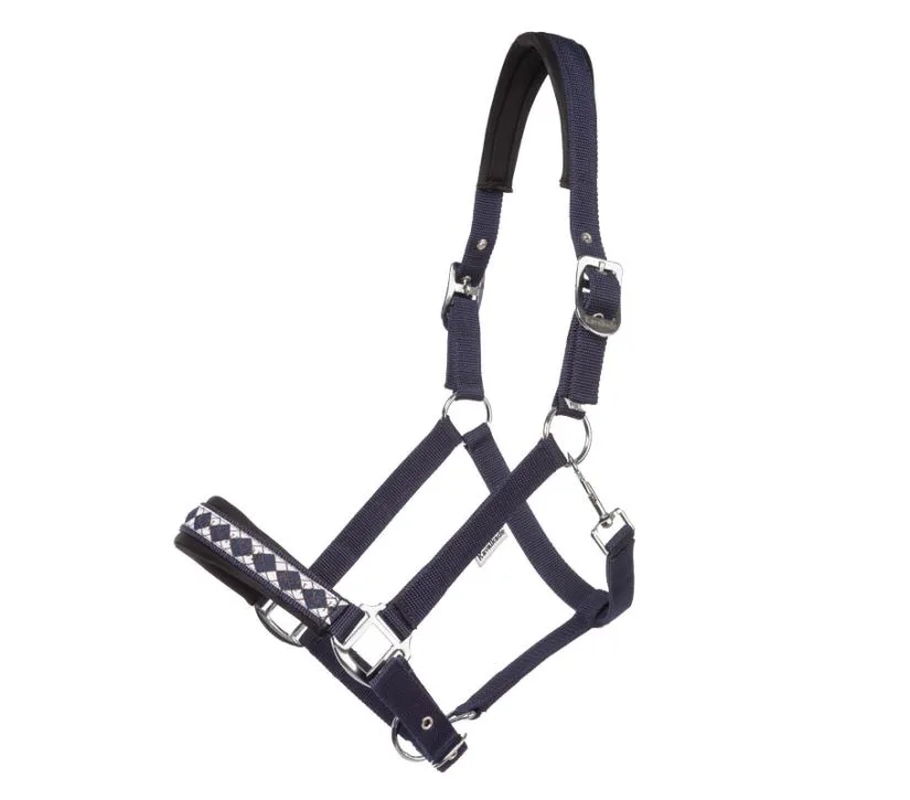 Oglavka Kavalkade Perlon Classic ima okrasni nosni trak preverjenega dizajna, ki je barvno usklajen. Naglavni in nosni del hlevske uzde sta mehko podložena. Oglavka je nastavljiva na zatilju na obeh straneh.