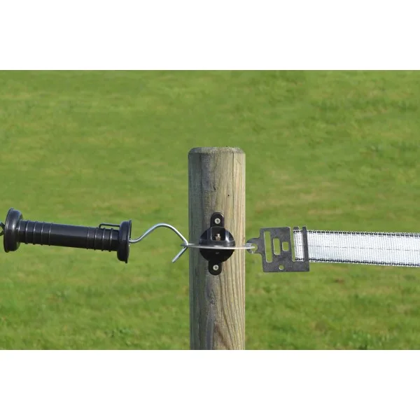 Pribitni izolator za ograjo Horizont s kovinsko ploščico se uporablja za vse ročke za vrata opremljenih s kavljem.