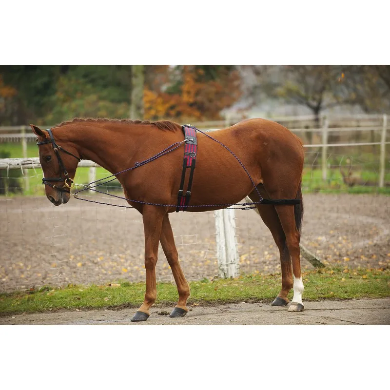 Uporaba tega pripomočka spodbuja konja, da se med delom iztegne naprej in navzdol. S svojo edinstveno zasnovo lahko vrvi prilagodite tako, da so daljše ali krajše, odvisno od višine in postave vašega konja. Ta pripomoček za trening Norton Pulley vedno uporabljamo kratkotrajno, da dosežemo največjo učinkovitost. Priporočljivo je, da svojega konja počasi pripravite na redno delo na lonži.