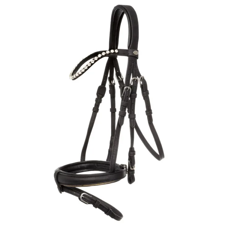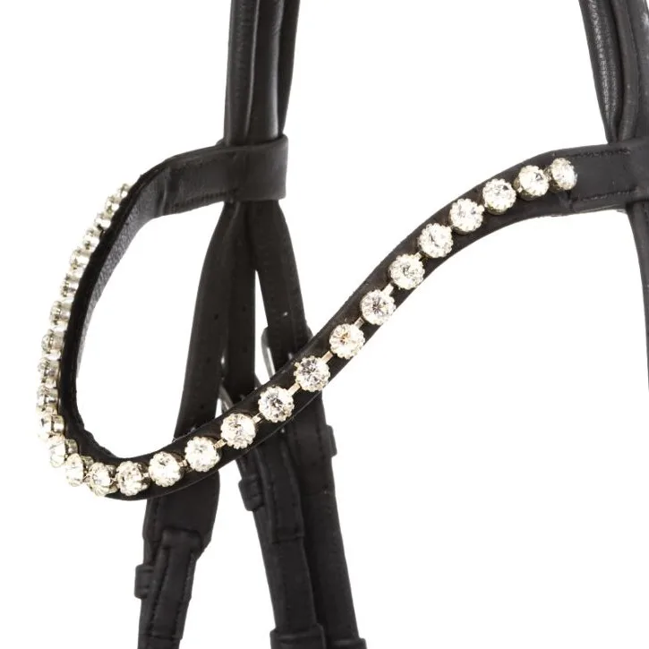 Uzda Kavalkade Cortica Vegan ima angleški kombinirani nosnik z anatomskim naglavnim delom. Slednji in nosnik sta mehko podložena. Uzda je nastavljiva na obeh straneh. Bleščeč čelnik in ozek bež trak vzdolž nosnika odlično pritegneta poglede.