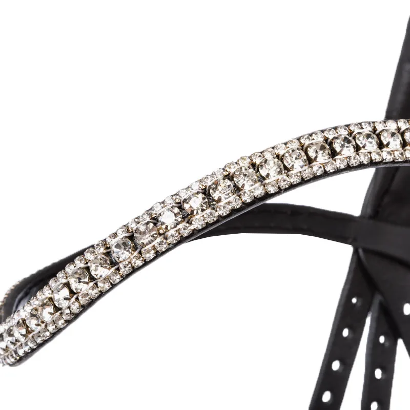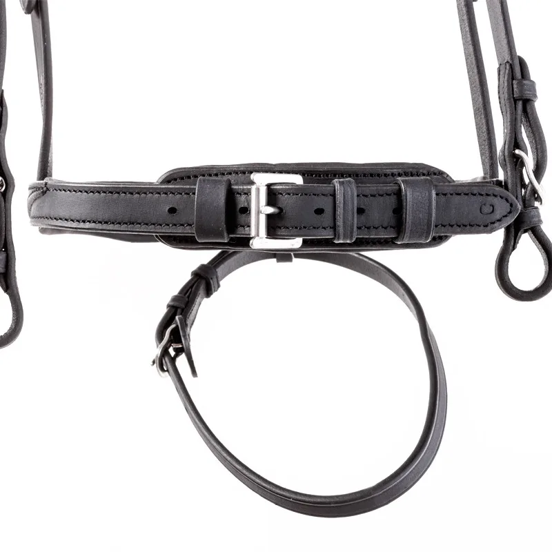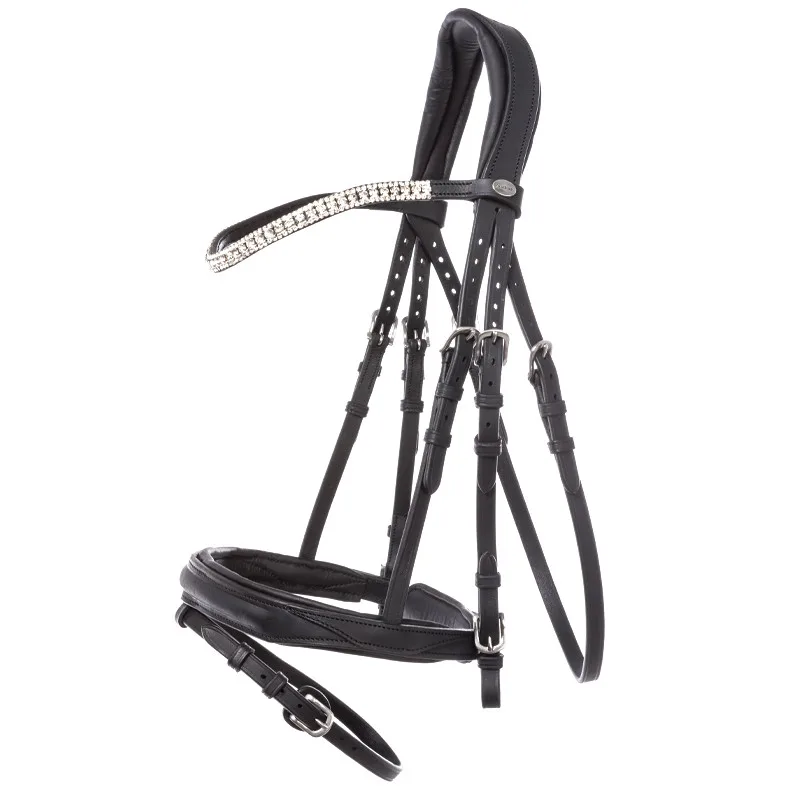 Posebno udobje za konja nudi tudi mehko oblazinjenje nosnika in čelnika. Za poseben videz ima nosnik ob straneh elegantne usnjene okrasne elemente. Čelnik se lesketa z velikimi in majhnimi kamenčki v beli barvi. Nosni trak je nastavljiv na obeh straneh.