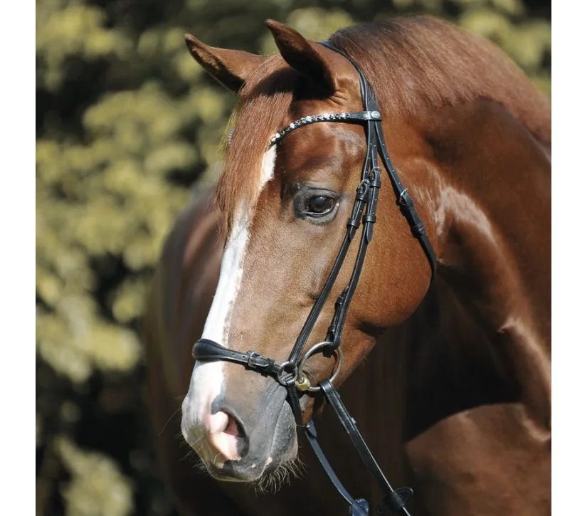 Elegantna uzda Kavalkade Fiala s hanoverskim naramenikom izrađena je od kvalitetne kože i ima mekano podstavljen naglavni dio i naramenik.
