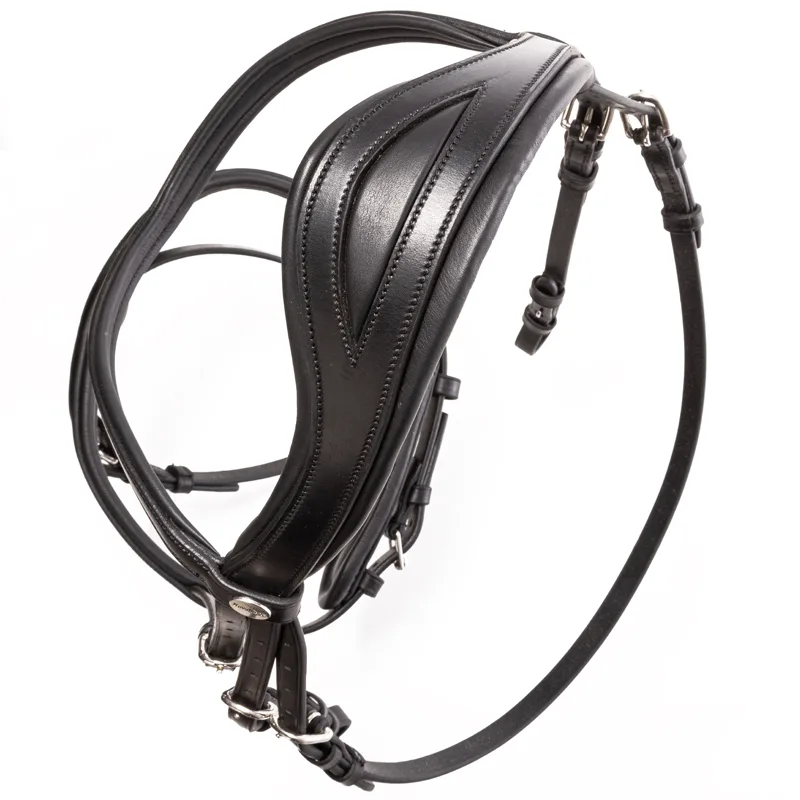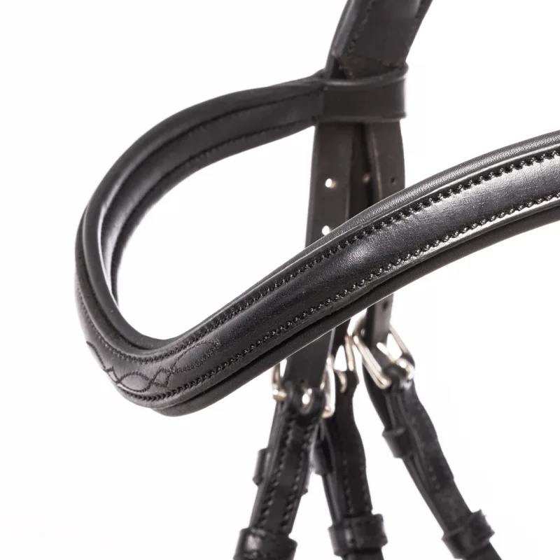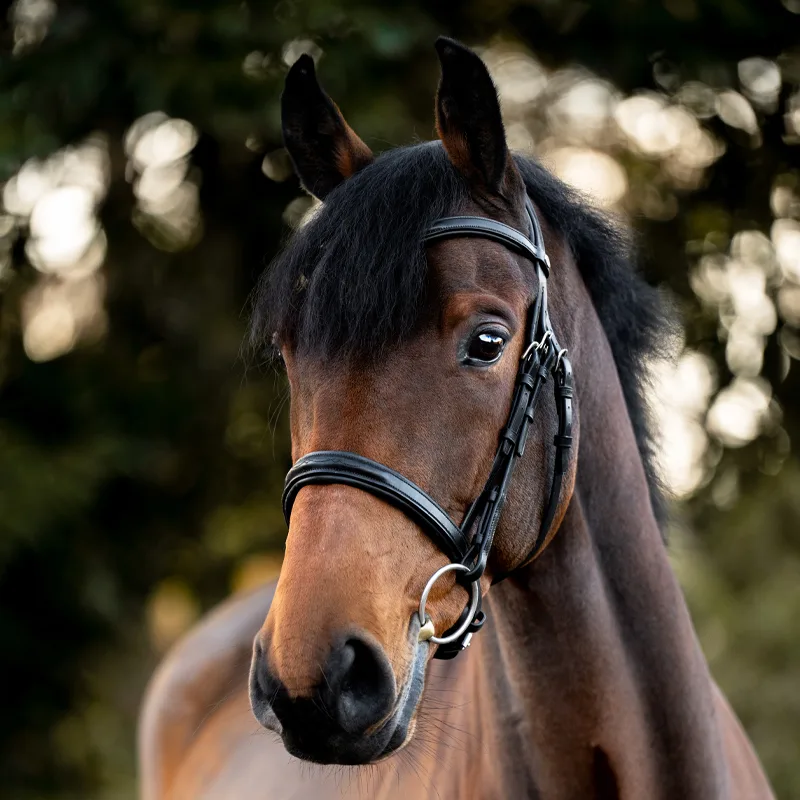 Anatomsko oblikovan zaušnik razbremeni občutljivo področje za ušesi in omogoča več udobja pri delu. Kombiniran nosnik poskrbi za stabilen stik brez nepotrebnega pritiska, kar spodbuja sproščenost in boljšo odzivnost konja.