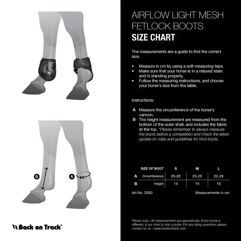 Zadnji ščitniki Back On Track Airflow – Air-tech in 3D Mesh tehnologija za maksimalno zračnost in moč. Anatomsko oblikovani ščitniki za zaščito zadnjega biclja. Oblika in struktura školjke je razvita za maksimalno udobje in zagotavljanje dobrega položaja na nogi. Trpežna lupina za zaščito pred udarci in za zaščito konja pred trki zadnjih nog. Dodatno prezračevanje. Dvojno zapiranje na kavelj in zanko za enostavno regulacijo in dobro prileganje. Rob iz mehke lycre. Welltex® tehnologija v podlogi, ki lahko izboljša prekrvavitev. Uporabni tudi pri nategih, oteklinah okrog sklepa, artritisu, vnetju, okrevanju ali kot podpora pri ogrevanju.