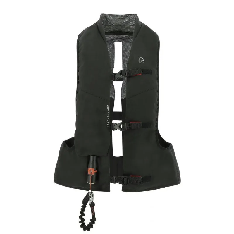 Nova zračna blazina EQUITHÈME AIR2, ki jo je razvil FREEJUMP, izpolnjuje zahteve novega standarda NF-S-72-800-2022 zahvaljujoč izjemno hitremu napihovanju: 115 ms za doseganje zahtevanega tlaka pri preskusih udarca za velikost jopiča M. Njegovo razširjeno območje pokritosti (zahteve standarda NF), ki celo presega standard NF pri vzdolžnih udarcih v hrbet. Zaščita spodnjega dela hrbta, ki jo upravljajo pritiskači omogoča skrajšanje dolžine zračne blazine med ježo in dodatno dolžino, ki se sprosti v primeru padca.