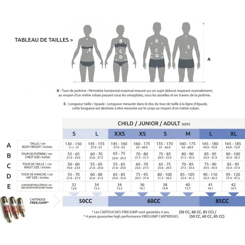Kartuše:50CC, 38g CO2 za EQUITHÈME AIR2 Otroške jopiče S in L in 60CC, 46g CO2 za ostale airbag zaščitne jopiče Air2